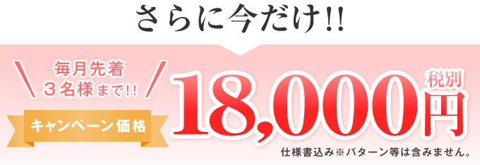 デザインのみで【今だけ毎月先着3名¥18,000(税別)】となります。